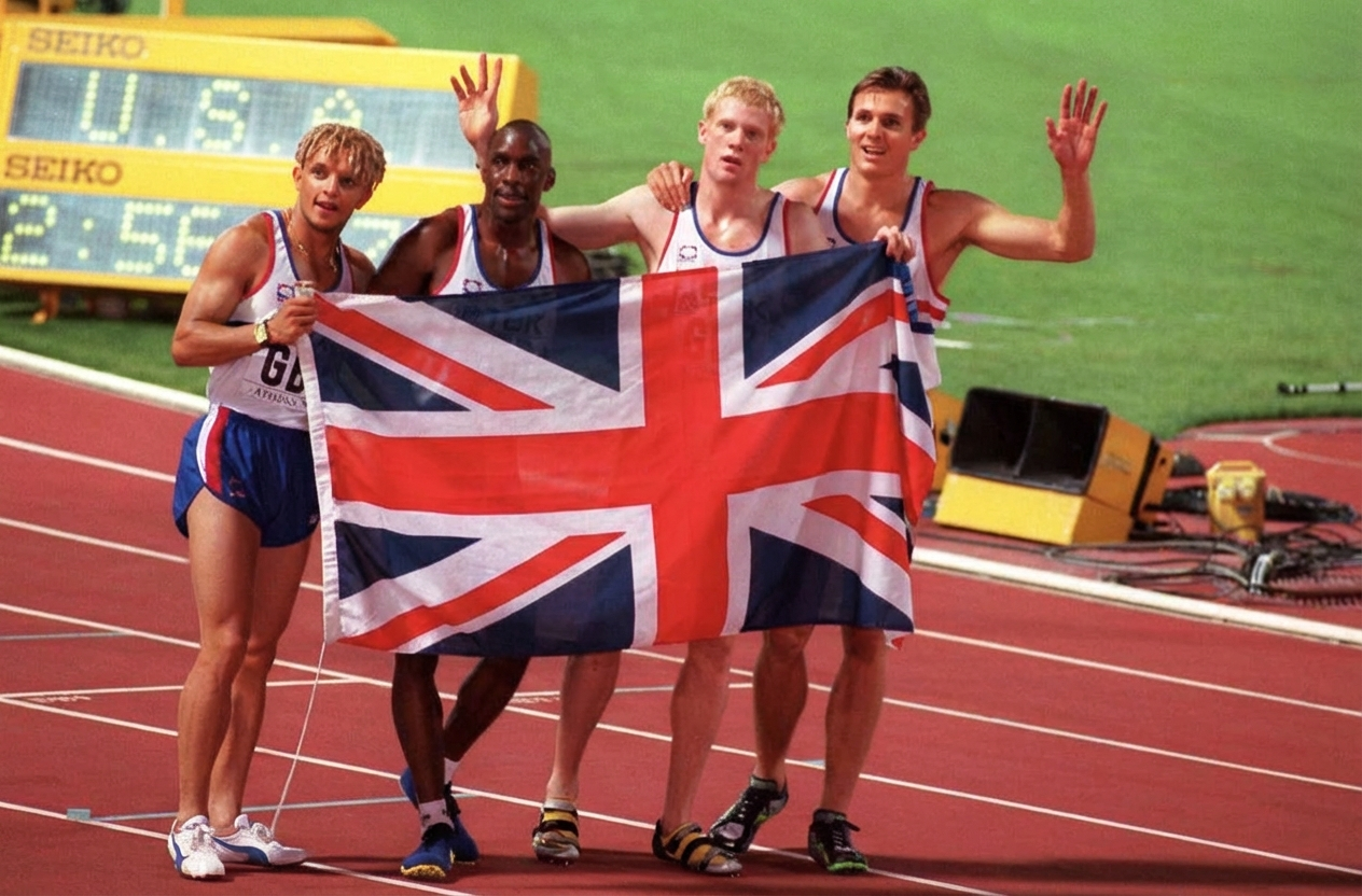 In a beautiful tribute to a long-overdue moment of justice, the framed gold relay baton gleams under soft light, commemorating the 1997 British 4x400 relay team. The baton represents the quartet—Iwan Thomas, Roger Black, Jamie Baulch, and Mark Richardson—whose talent and perseverance were finally recognised. Though they originally crossed the line in silver, the baton marks the upgrade to gold, awarded just last year in London’s Olympic Stadium. The upgrade came after the American team’s disqualification—a bittersweet but proud vindication of integrity.
