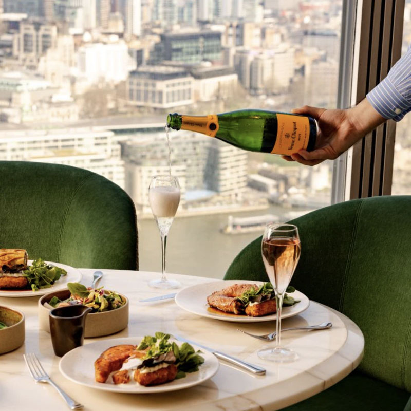 Your experience includes a glass of Veuve Clicquot Champagne each, making this a dining experience like no other.
